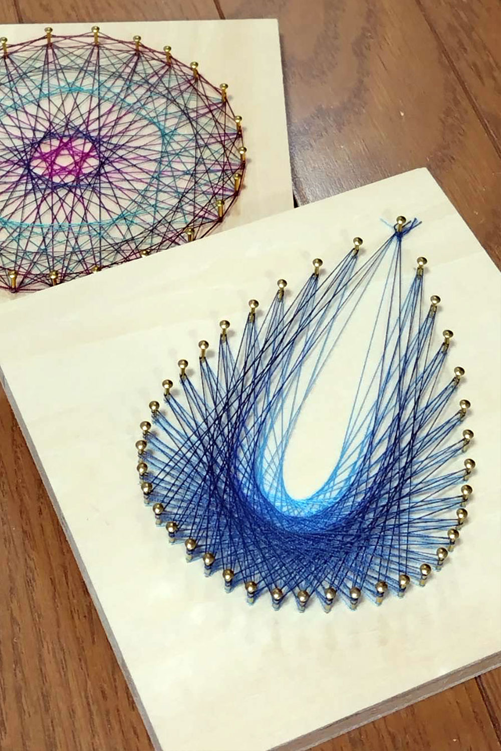実は単純!30分程で作れます 糸の色を選ぶのも楽しい〜♪(今回はちょっと変わった糸も準備) 無心に糸をかけて、出来た達成感と飾る楽しみを、是非お持ち帰りに!